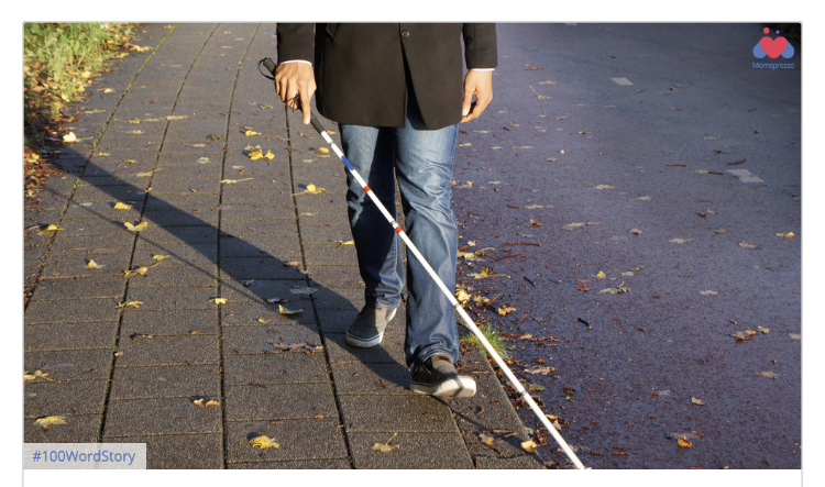 The crisp blue jeans. The black well ironed coat and the smart snickers. This conjures up a picture of a man in a happy state of mind. The probing cane which he is holds adds smartness to his gait. The early hour of the day, where the leaves are still strewn on the pavement, waiting to be gathered by the street sweeper he walks with his confident strides.